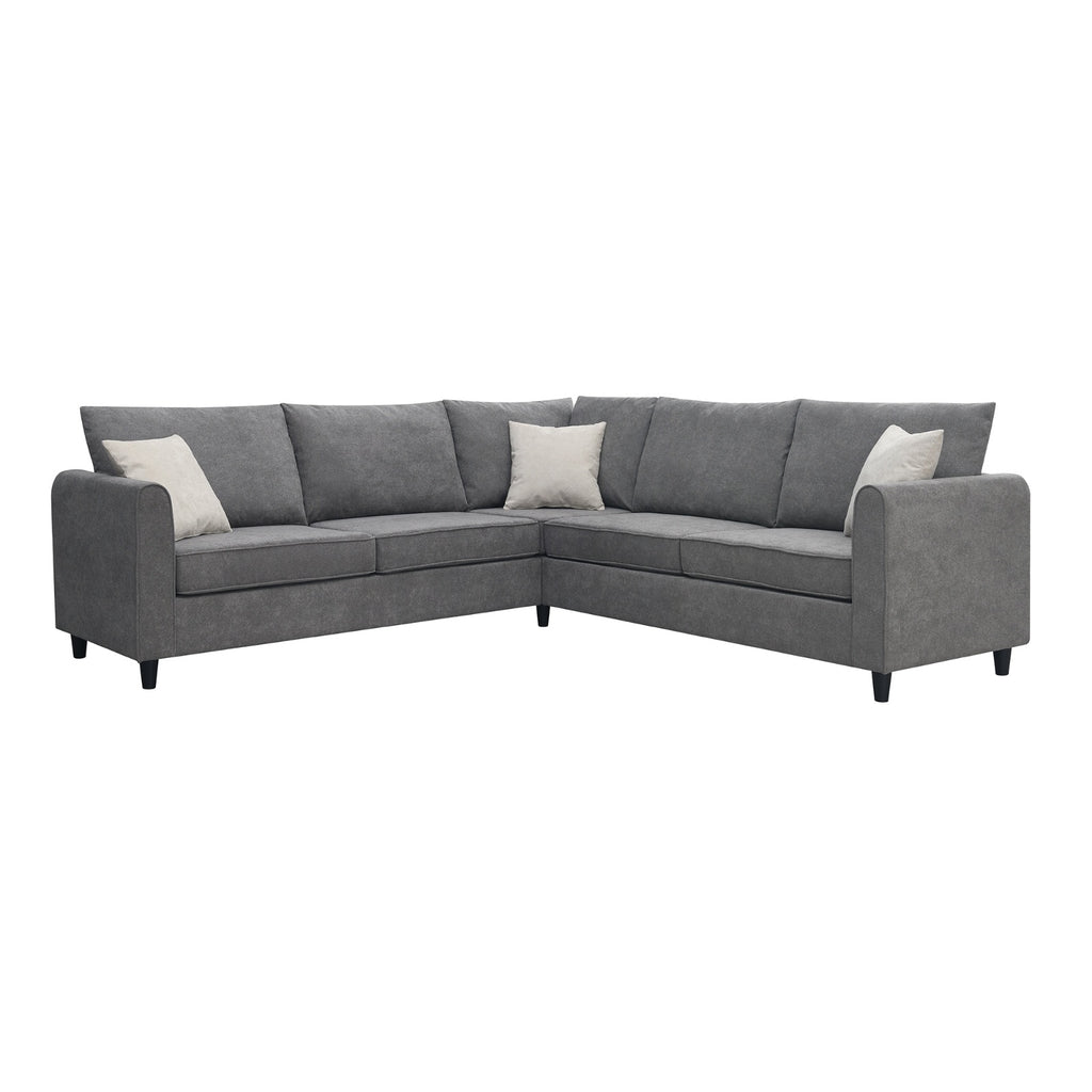For a living room with style, comfort and spacious seating, the 3-piece sectional sofa will satisfy your needs. This sectional features gray upholstery that's both versatile and trendy. And, when it comes to comfort, delivers with its huge seating area and extra accent pillows. With all these great features, you're in for a well-balanced room with character.