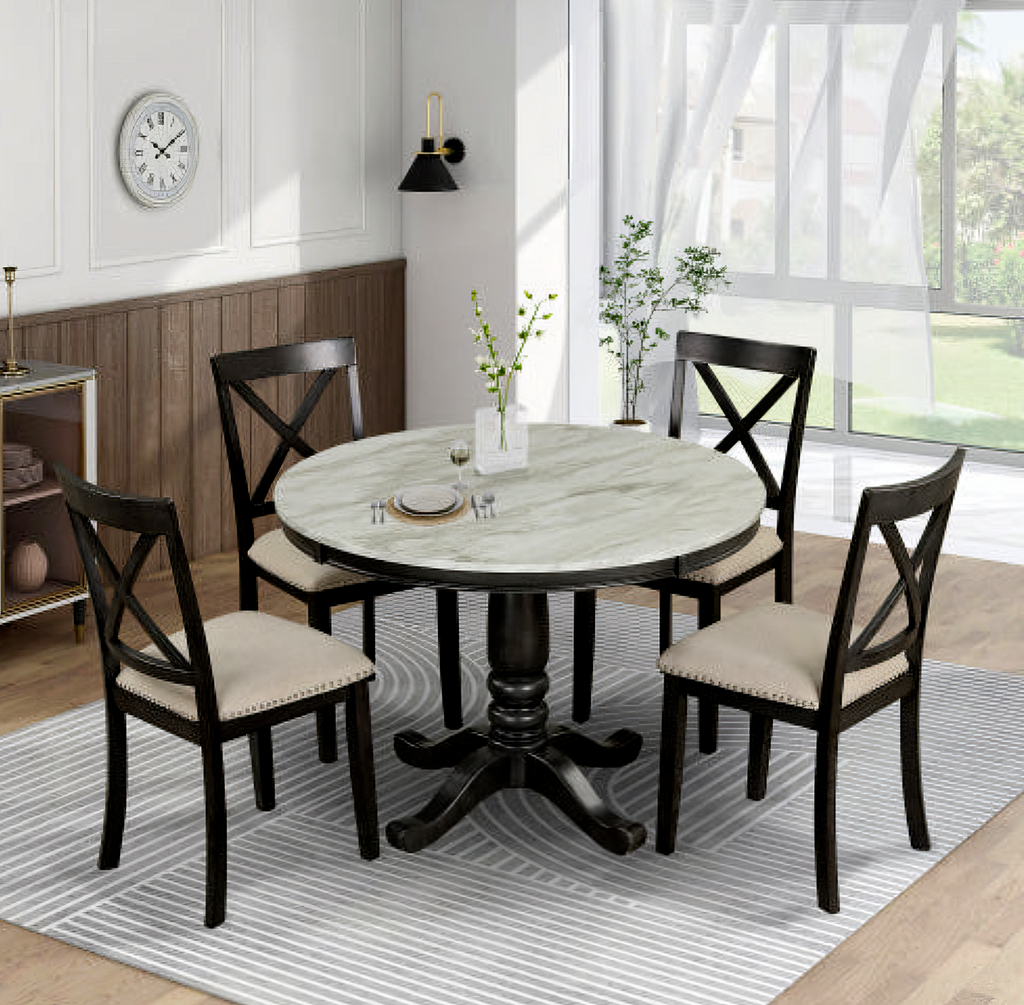 - Modern Table Set Suits Dining Room - This 5-piece dining table set is elegant and simple, not only perfectly blends with any style of home decoration, but also adds a stylish feel to your space.