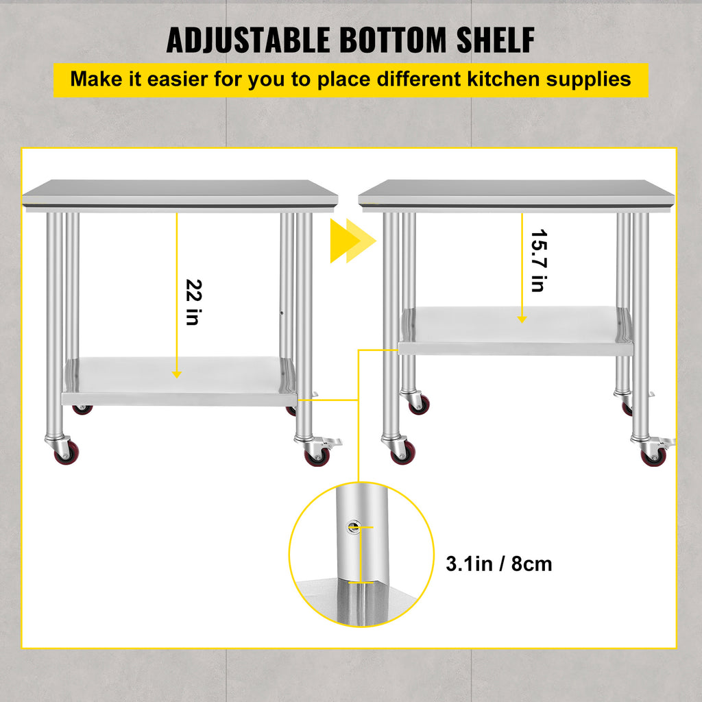 • VEVOR Stainless Steel  Commercial Food Prep Worktable With Casters