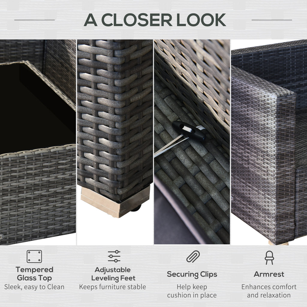 7 Piece Wicker Patio Furniture For Backyard Outdoor Sectional Sofa With Cushions Tempered Glass Coffee Table Pillows Gray