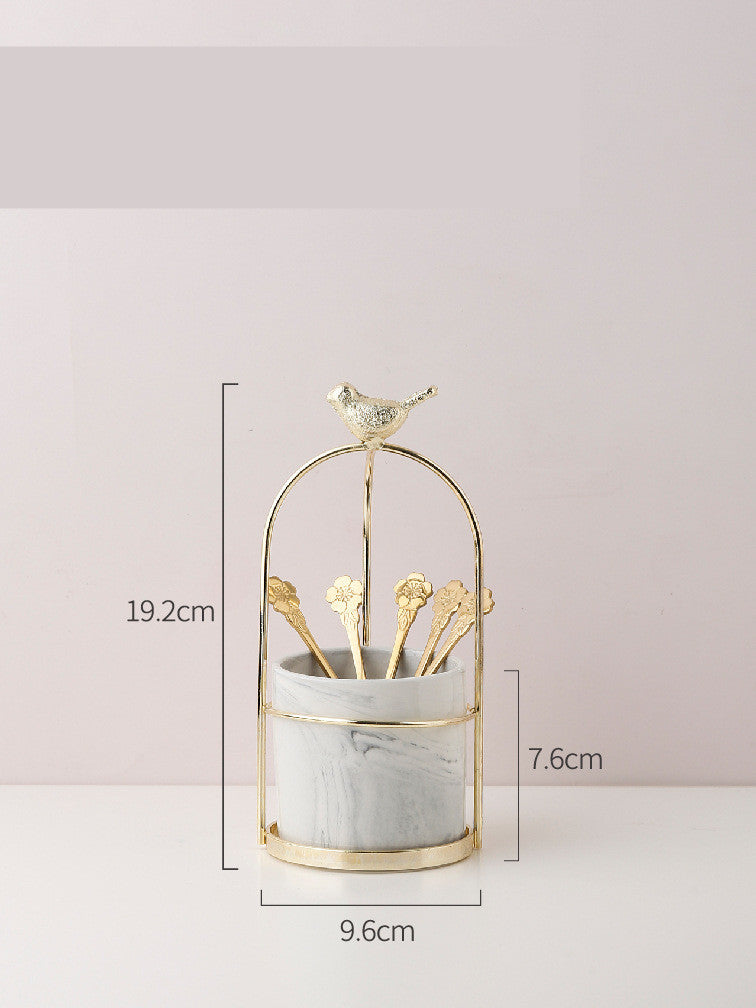 Color: gold-plated ceramic fruit plate—6 inches, gold-plated ceramic fruit plate—8 inches, bird marbled pot + 5 leaf spoons, bird marbled pot + 5 cherry forks