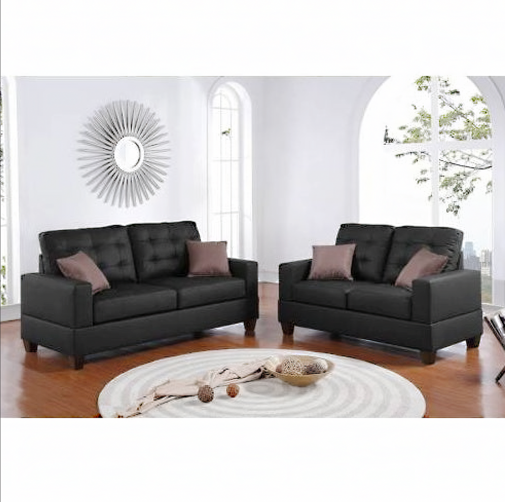 Believe in the possibilities of boldness with this 2-piece sofa set that includes a loveseat and a 2-seat sofa. Plush cushion, accent tufting and light stitching define this amazing seating space great for the modernly designed home. Available in faux leather black, beige and espresso, and grey (linen-like fabric).